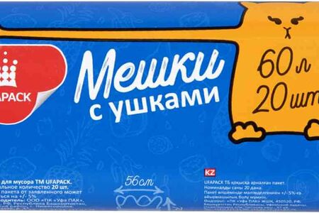 Пакеты для мусора Ufapack с ушками 60 литров, 20 шт. доставка