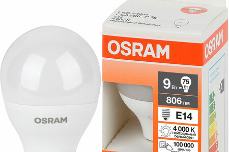 Лампочка светодиодная Osram LED Шар 9Вт Е14 нейтральный свет доставка
