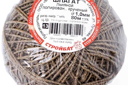 Шпагат льняной полированный крученый Стройбат 1 мм, 80 м доставка