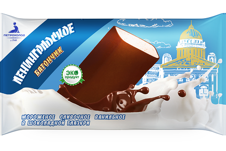 Мороженое сливочное Петрохолод Ленинградское Ванильное в шоколадной глазури доставка