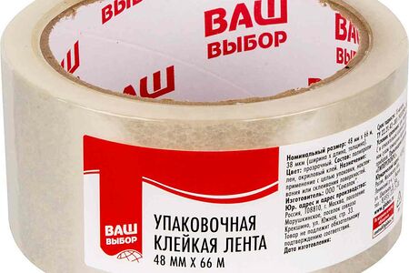 Клейкая лента упаковочная Ваш выбор прозрачная 48 мм, 66 м доставка