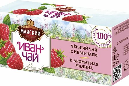Чай черный Майский с Иван-чаем и малиной в пакетиках, 25 шт доставка