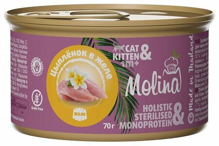 Консервы для котят и кошек Molina Цыпленок в желе доставка