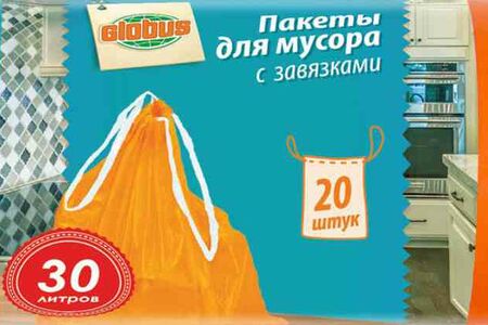 Мешки для мусора Глобус с завязками 30 литров, 20 шт. доставка