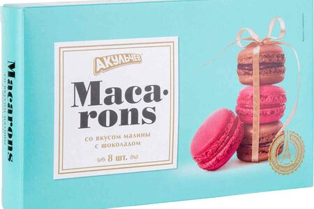 Пирожные миндальные Macarons Акульчев со вкусом малины и шоколада, 8 шт. доставка