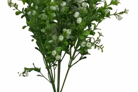 Букет декоративных искусственных цветов (7 шт) "гипсофила белая", стебель - проволока из углеродистой стали с зелёным пластиковым (полипропилен) покрытием, цветы (белого цвета) и листья (зелёного цвета) из полиэстера, способ крепления: клеевой, размер 49*16*16 см, длина стебля: 40 см.