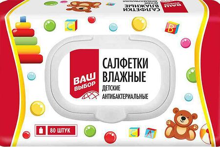 Влажные салфетки детские Ваш выбор антибактериальные 80 шт. доставка