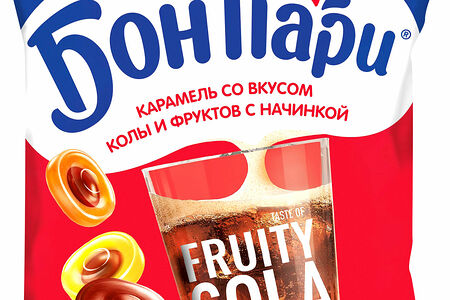 Карамель Бон Пари со вкусом колы и фруктов с начинкой 200г доставка