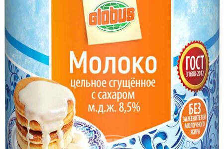Молоко цельное сгущённое Глобус с сахаром 8,5% доставка