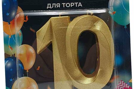 Свеча для торта фигурная Грань - Цифры 10 цвет: золотой металлик, 6,5 см доставка