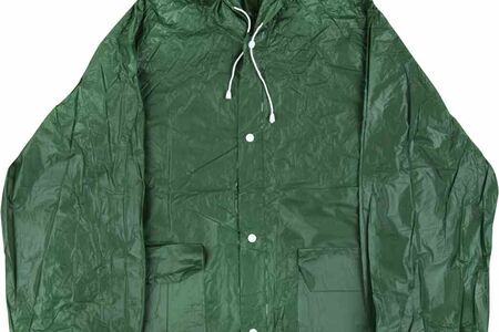 Дождевик для взрослых; пластиковая застежка спереди; шнурок на капюшоне; материал: 100% пвх; цвет: темно-зеленый; размер: xl; толщина 0,10 мм; длина: 75 см; ½ груди: 70 см; длина рукава: 68 см.
