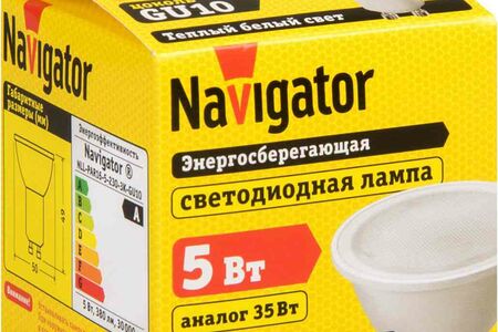 Лампа светодиодная Navigator GU10 230В 3000К теплый белый свет, рефлектор, 5 Вт доставка