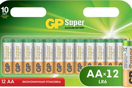 Батарейки алкалиновые GP Super AA/R6/LR6 экономичная упаковка, 12 шт. доставка