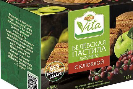 Белёвская пастила яблочная Глобус Вита с клюквой без добавления сахара доставка