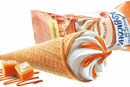 Мороженое Лекарство для Карлсона в сахарном рожке с наполнителем Соленая карамель доставка