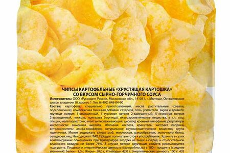 Хрустящие картофельные чипсы – это скорость, энергия и драйв! Они созданы для самых активных – для тех, кому нужно супер топливо. В лучших традициях! Чипсы хрустящий картофель – это лёгкие и всегда ровные золотистые ломтики из настоящего картофеля. Время обжарки не превышает 25 секунд. Без канцерогенов! Стабильное качество независимо от сезона и урожая.