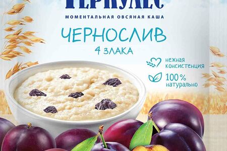 Злаковая каша "геркулес" с черносливом - вкусный и быстрый завтрак. Микс четырех видов хлопьев: овсяных, ржаных, пшеничных, ячменных. Содержит натуральные пищевые волокна, которые при регулярном употреблении помогают улучшить пищеварение.