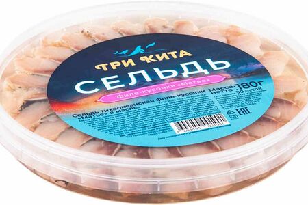 Сельдь тихоокеанская Три кита филе-кусочки Матье в масле доставка