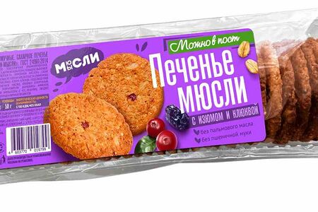 Печенье Мюсли-Мысли с изюмом и клюквой доставка