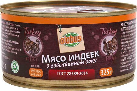 Мясо индеек Глобус в собственном соку доставка