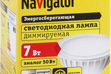 Лампа светодиодная диммируемая Navigator MR16 GU5.3 4000К 220-240 В холодный белый свет, рефлектор, 7 Вт доставка