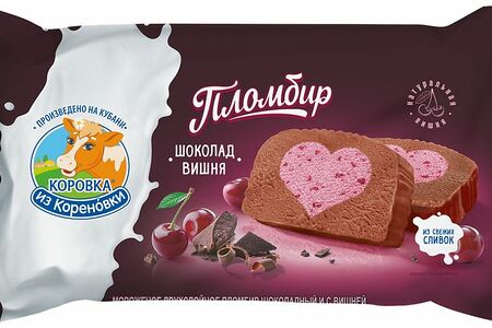 Мороженое Коровка Из Кореновки двухслойное пломбир шоколадный с вишней 15% 200г доставка