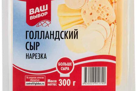 Сыр Голландский Ваш выбор 45%, нарезка доставка