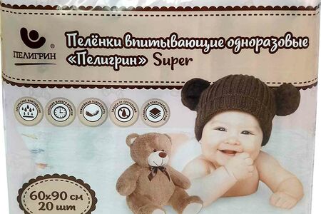 Детские пелёнки одноразовые Пелигрин Super впитывающие 60×90 см, 20 шт. доставка