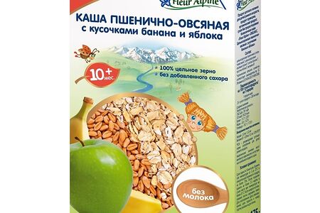 Каша безмолочная пшенично-овсяная с кусочками банана и яблока с 10 месяцев, Fleur Alpine БИО доставка