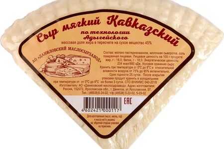 Сыр мягкий Кавказский Даниловский маслосырзавод 45% доставка
