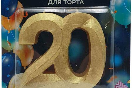 Свеча для торта фигурная Грань - Цифры 20 цвет: золотой металлик, 6,5 см доставка
