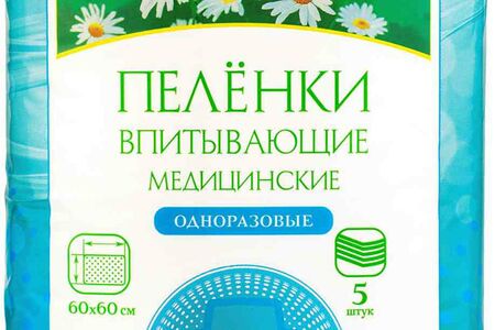 Пелёнки для взрослых впитывающие Ромашкин луг одноразовые 60×60 см, 5 шт. доставка