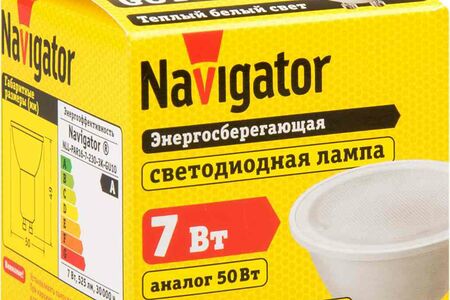 Лампа светодиодная Navigator GU10 230В 3000К теплый белый свет, рефлектор, 7 Вт доставка