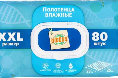 Влажные полотенца очищающие Глобус размер XXL, 80 шт. доставка
