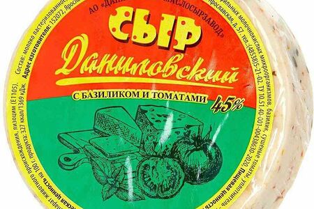 Сыр полутвердый Даниловский маслосырзавод с томатом и базиликом 45% доставка