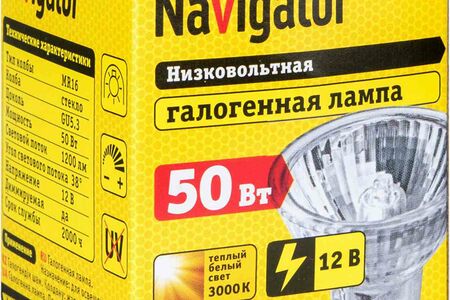 Лампа галогенная Navigator GU5.3 12В 3000К теплый белый свет, 50 Вт доставка