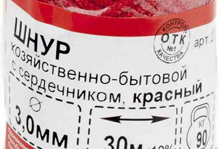 Шнур хозяйственно-бытовой Стройбат с сердечником красный 3 мм, 30 м доставка