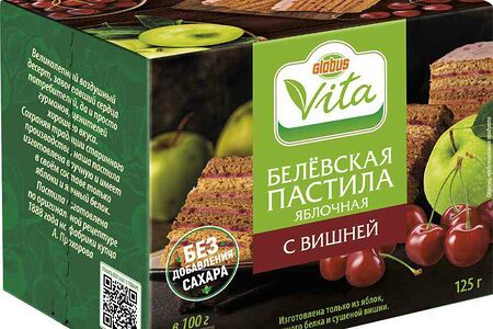 Белевская пастила яблочная Глобус Вита с вишней без добавления сахара доставка