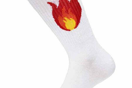 Высокие носки с резинкой-лапшой, с изображением огня на паголенке и акцентной резинкой.
