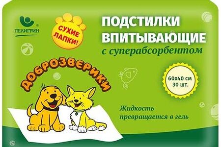 Пеленки Доброзверики Super с суперабсорбентом 60 х 40 см., 30 шт. доставка