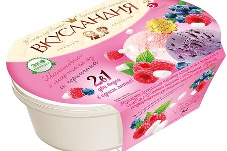 Мороженое пломбир Вкусландия Малиновый с маршмеллоу и черничный 12% доставка