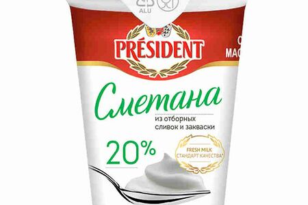 Сметана President 20% доставка