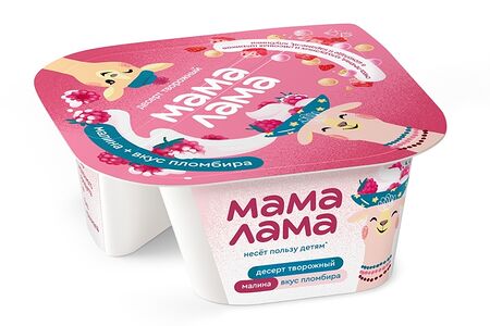 Десерт творожный Мама Лама с малиной и вкусом пломбира, смесью печенья, кукурузных и рисовых шариков 5.7% доставка