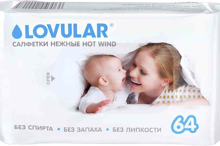 Влажные салфетки Lovular нежные hot wind, 64 шт. доставка