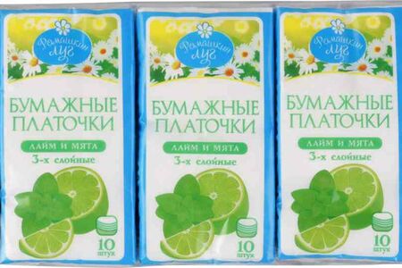 Платочки бумажные Ромашкин луг Лайм и мята 3 слоя, 10 уп. × 10 шт. доставка