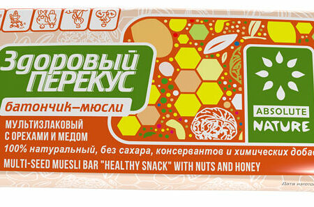 Здоровый Перекус батончик-мюсли мультизлаковый с орехами и медом доставка