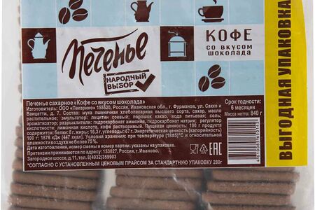 Печенье сахарное Пекарино Кофе со вкусом шоколада доставка