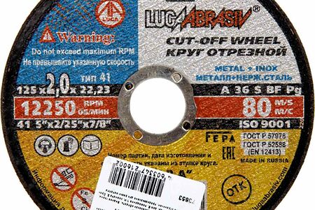 Круг отрезной по металлу LugaAbrasiv 73653 A 36 S BF Pg 80, 125×2,0×22,2 мм доставка