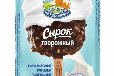 Сырок творожный глазированный Коровка из Кореновки ванильный в молочно-шоколадной глазури с фундуком 23% доставка