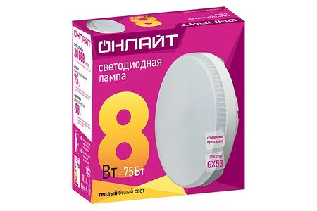 Лампа светодиодная ОнЛайт теплый белый таблетка Gx53 8Вт 220V 2700K, 1 шт. доставка